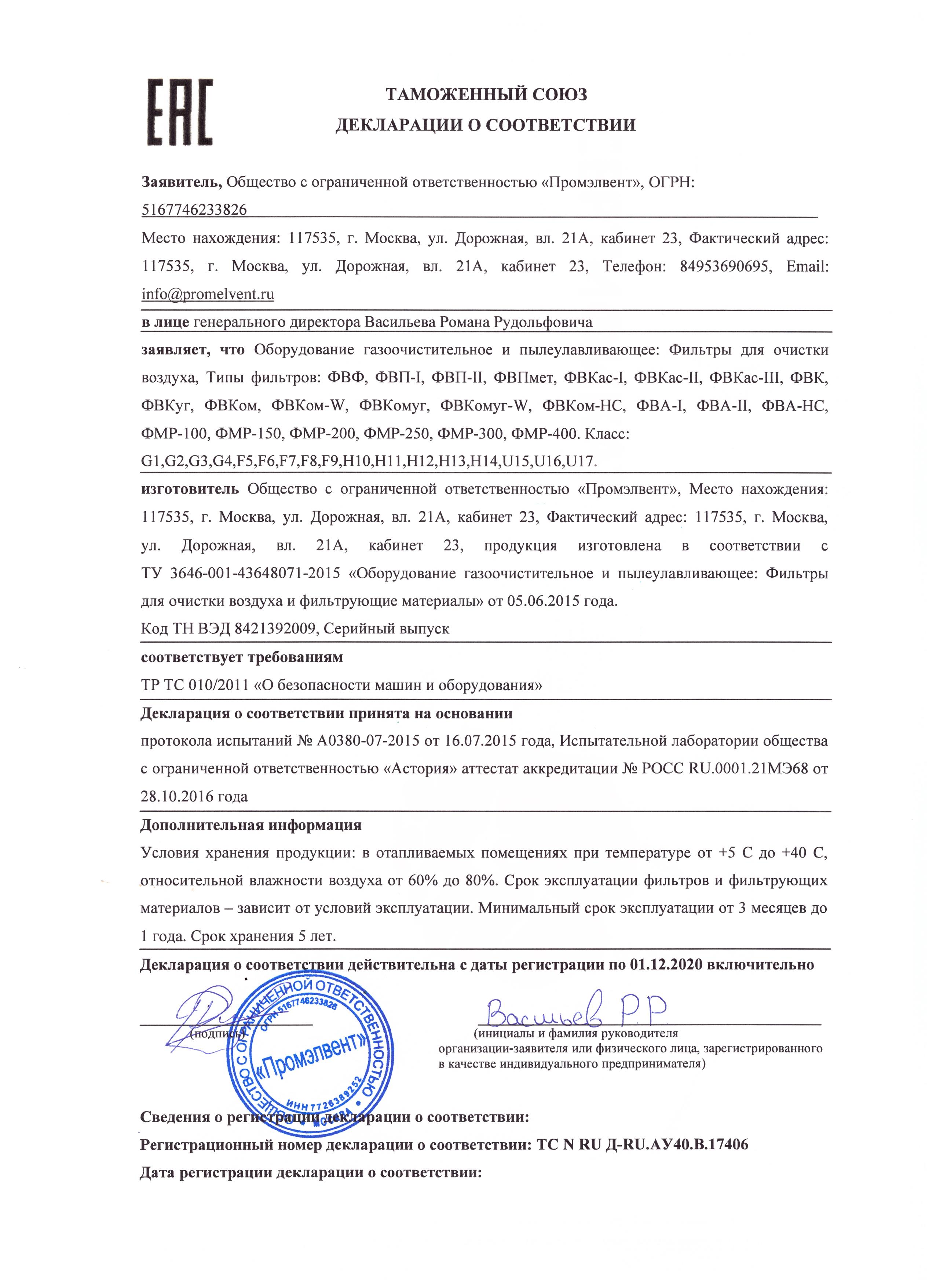 | Класс очистки по EN779:2002 | F9 | F8 | F7 | F6 | F5 | |